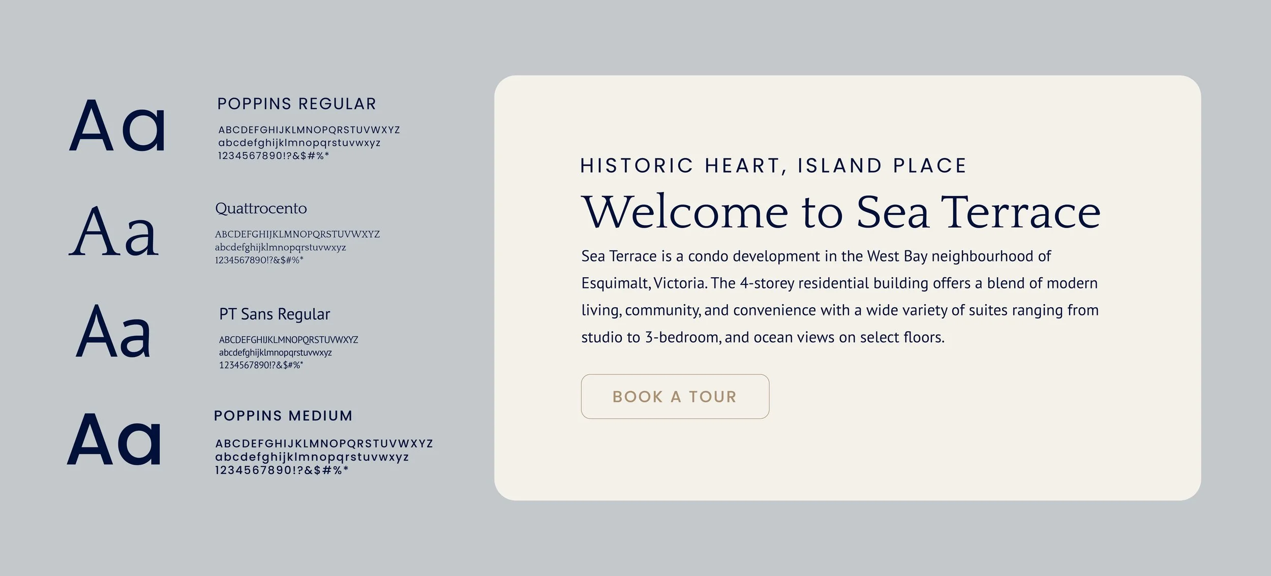 From the logo system to typography to color palette, every element of Sea Terrace’s brand identity was created to reflect modern elegance and coastal serenity. The name itself, drawn from the scenic road where the property sits, reinforces the seamless connection to water and landscape.
